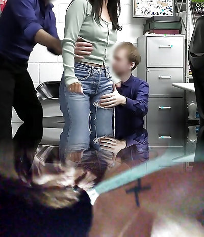 Unlucky Attractive Thief Gets Bullied And Cavity Searched By Girl And Male Officer In The Backroom