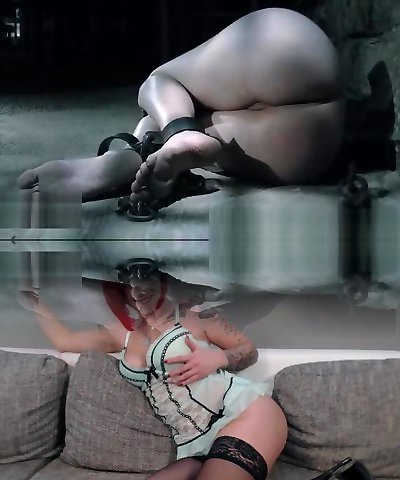 Fettered blonde sexpot Cherie DeVille in her hardcore BDSM session