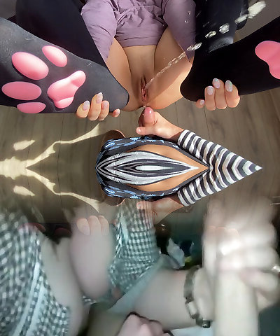 She pisses on his dick after ass fucked in daddy living room, he pee on her foots.