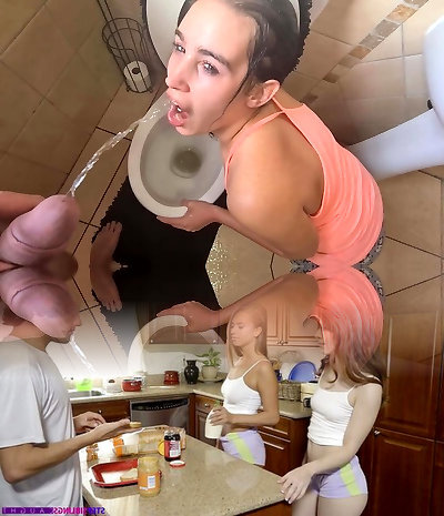 Human rest room girl gets her face soaked with urinate over the toilet