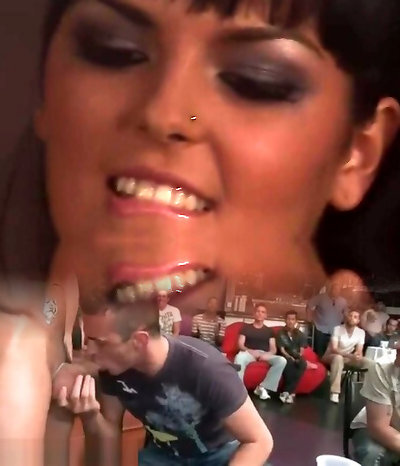 Pierced Loud Moaning Brunette Drizzles All Over Lucky BBC