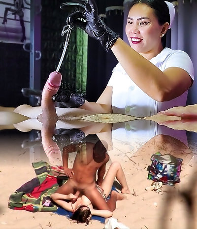 CFNM femdom ginger-haired teen jerking off a enslaved man's dick