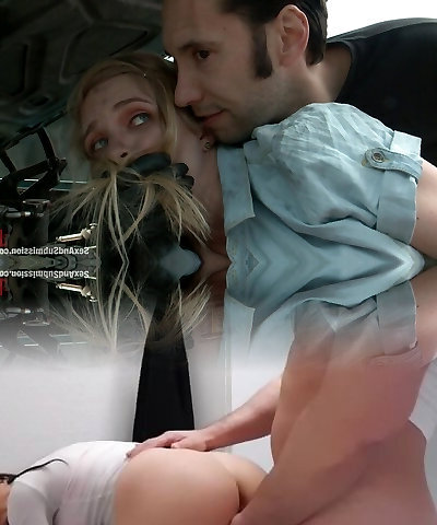 Submissive bound up light-haired is humiliated by stud and dominant bitch