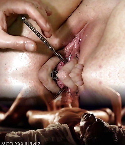 pee hole screwing with toothbrush and insertion of lengthy metal chain into her bladder