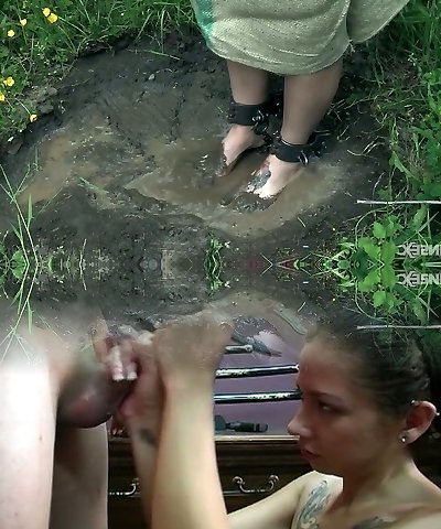 Two German slaves pleasing their big dick tormentor outdoors