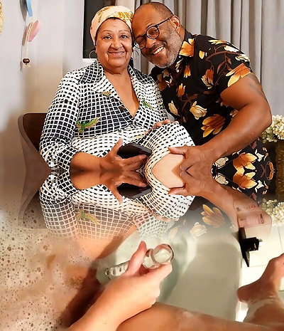I take a bath next to my and we end up shagging and he jerks my monstrous tits