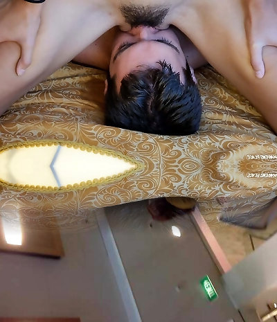 Very slimy cunnilingus from behind and orgasm on his face