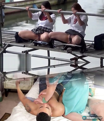 Bizarre asian teens peeing outside