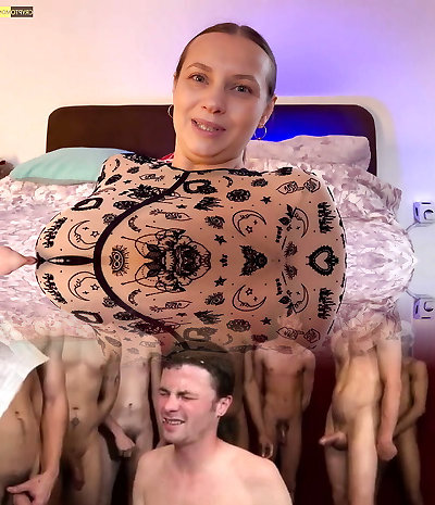 Big whore Barbie Sins hard fucks with 5 boys and gets piss in mouth