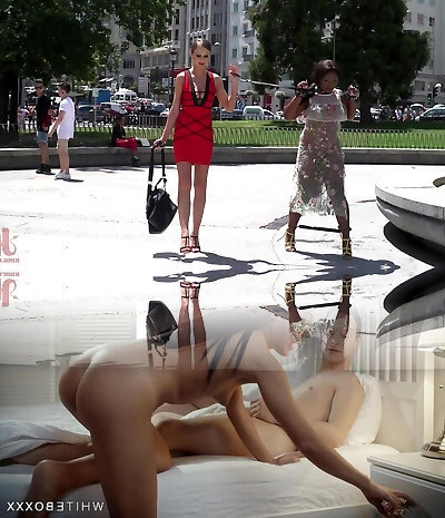 Totally nude whore Mona Wales strolls along the city before being drilled hard