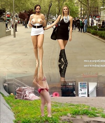 MATURE4K. Wild mature giantess Diana loves pet play in tights with 2 strangers in public