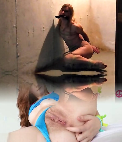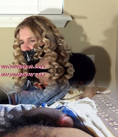 Tied-up and gagged beauty moans in delectation