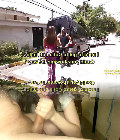 Sporty kinky brunette kneels down to inhale a delicious lollicock for man milk