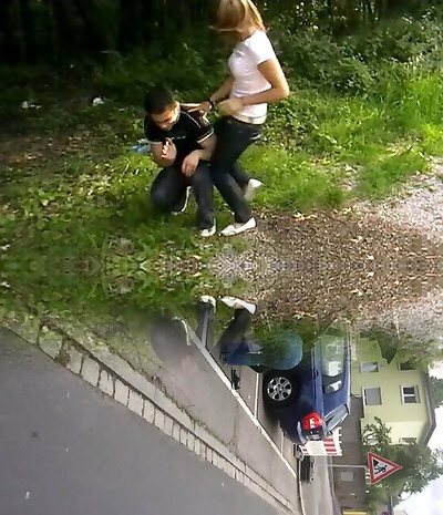 Bizarre asian teenagers peeing outside