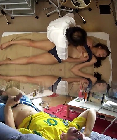 Perverted Japanese wank her hairy pussy while her man fucks her in anal