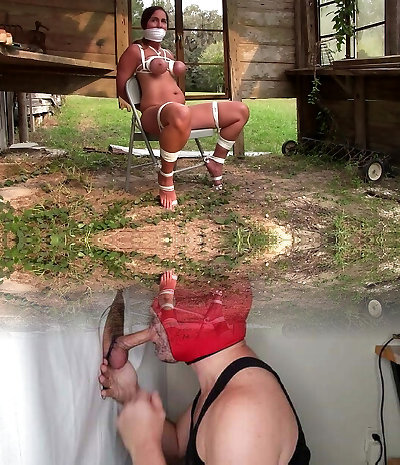 Dominatrix jerking off. Slave fuckpole play