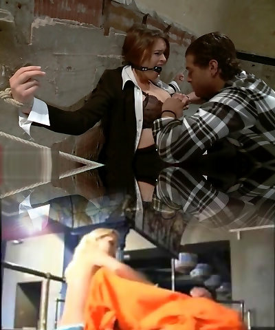 mechanic grabs platinum-blonde bitch and ties her up and fucks her rock-hard as slave