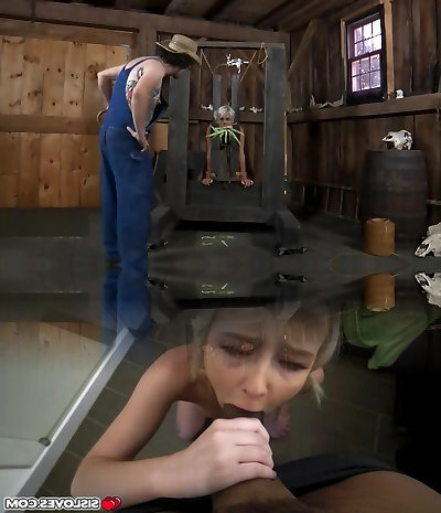 Tiny blond chick Odette Delacroix is turned into wooden Deep Throat box for stiff invasion