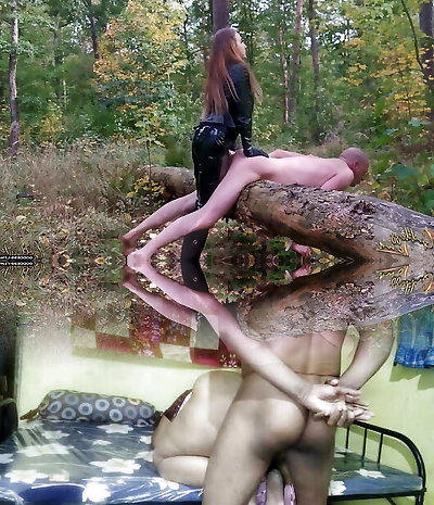 Wild girls found a trussed up guy in the woods and ate every inch of his dick