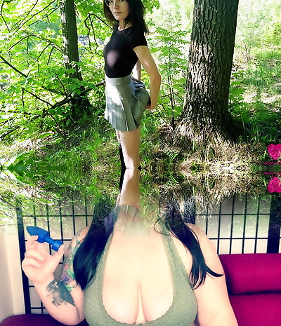 Fat domina with huge boobs and glasses teasing with her feet