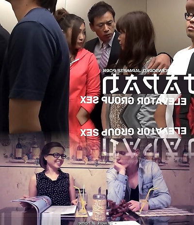 Elevator group sex - Japanese goes wild