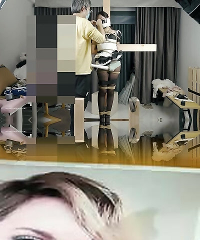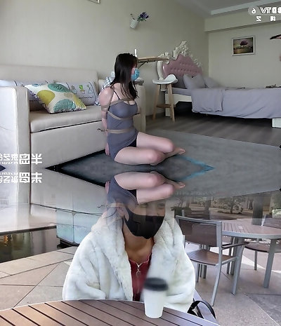 Tied up teenie coochie pounded hard by mask wearing stepbro