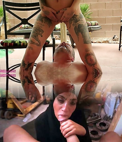 Young tattooed dominatrix is pissing on submissive dude Jimmy Broadway