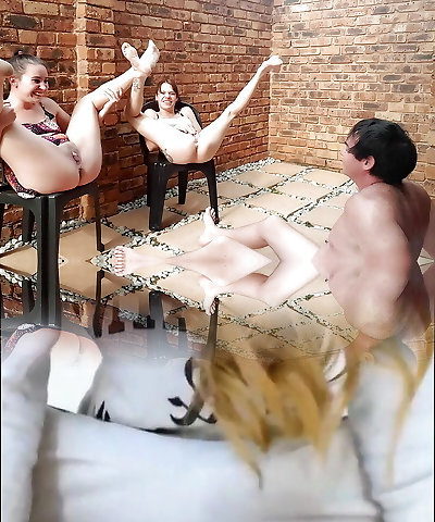 2 girl aiming their pussies to piss on boy's face, human toilet.