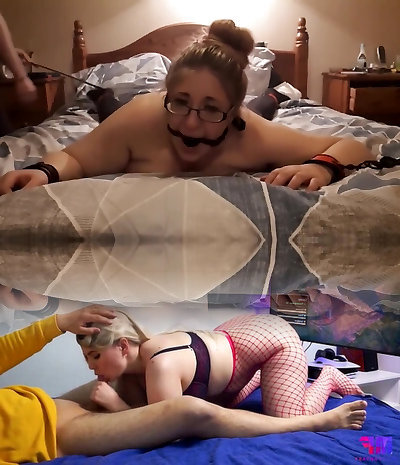 The two sweethearts dominate the crime boss and they stripped him until the veiny dick of him popped out.