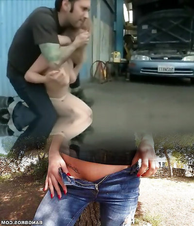 mechanic grabs platinum-blonde bitch and ties her up and fucks her rock-hard as slave