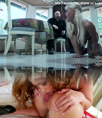 Submissive bound up light-haired is humiliated by stud and dominant bitch